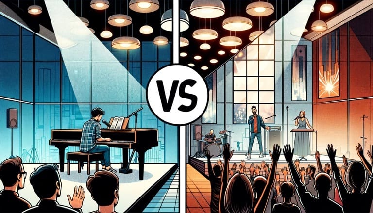 The artist aims at an individual's heart, while the leader aims for a collective encounter for the congregation.